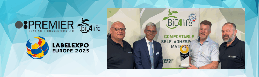 These aren’t just words. This statement has been solidified further in 2025. We met with Bio4life to congratulate them at Labelexpo Europe four years later, as they collected their Global Sustainability Award from Labels and Labeling. The same week, we announced a new adhesive addition to our PREMECO™ range; BioTAK® HC700. Meaning that combined with our substrates and liners, we are able to produce a fully certified home compostable material from our UK base.